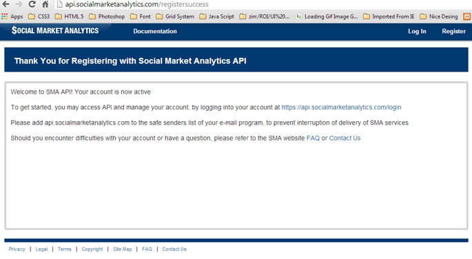 To get SMA API key, you need to be a registered user on SMA website. To create a new account on SMA, please click the register link.